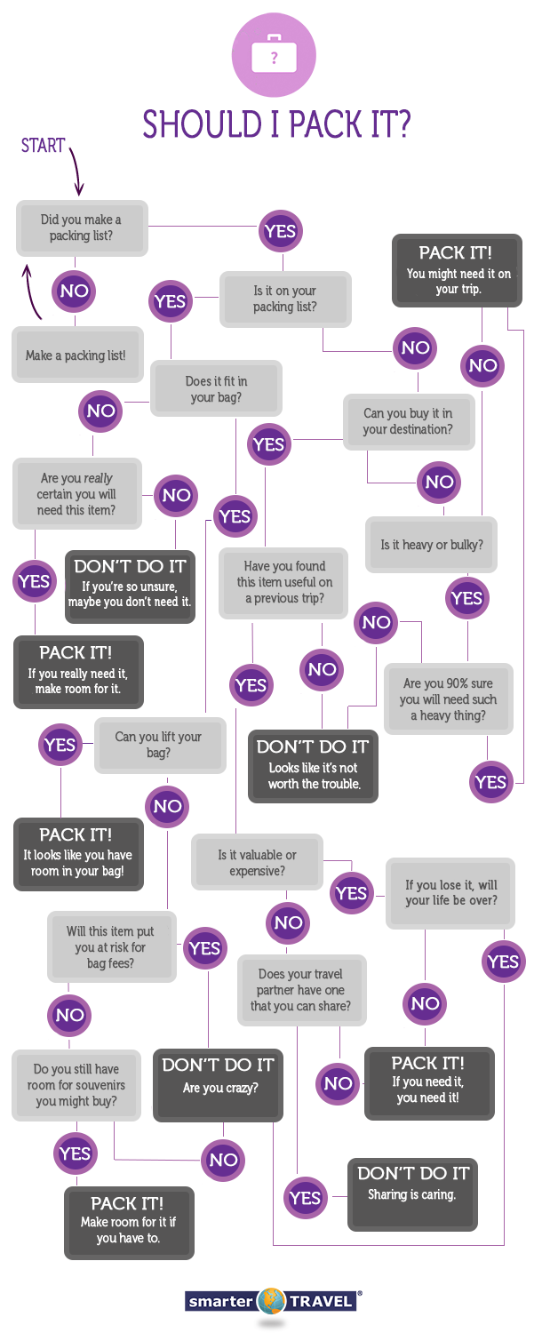 Ma come fare, in generale, a scegliere cosa portare e cosa no? Questa infografica di Smarter Travel può aiutarti a decidere!